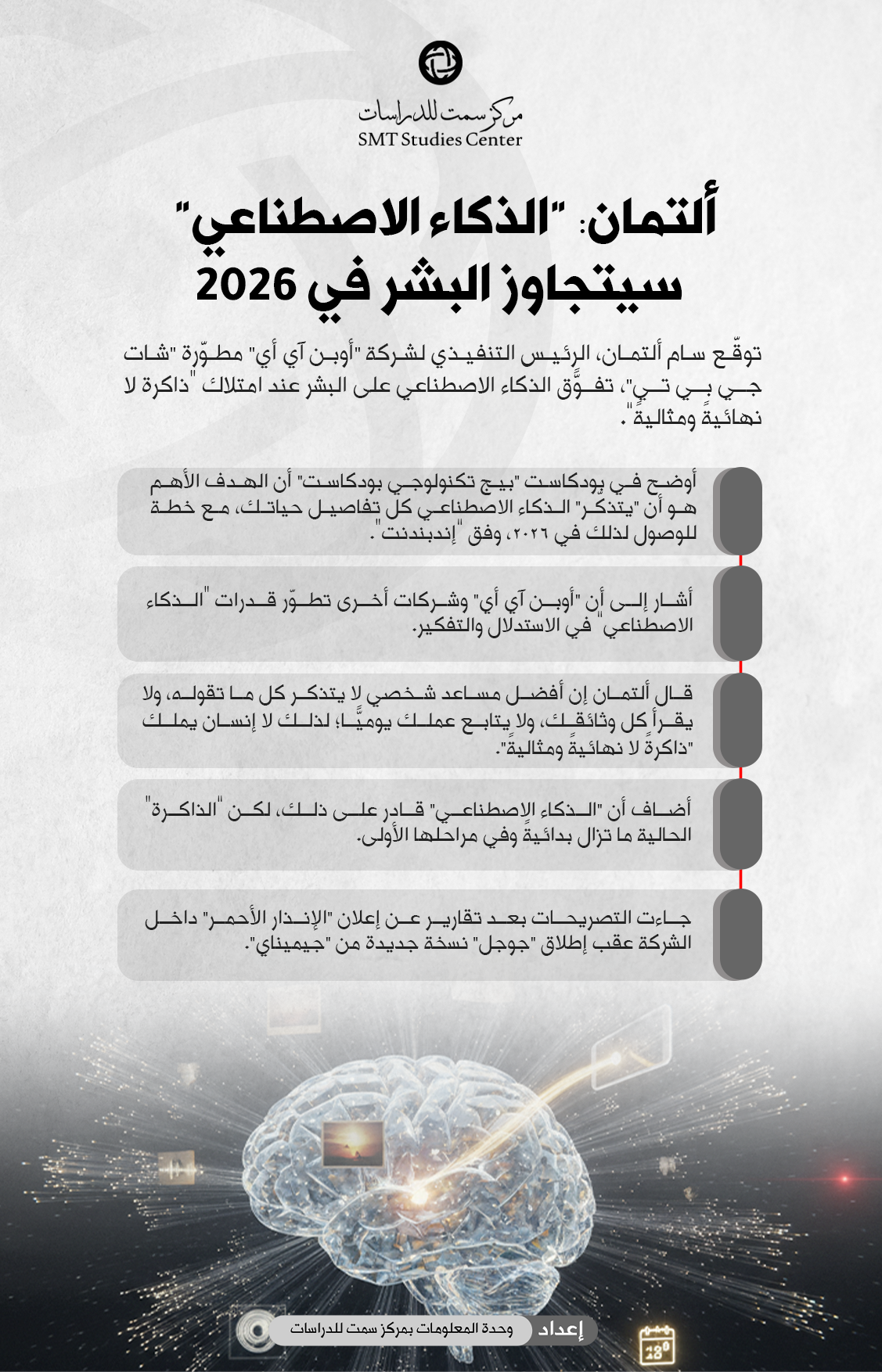 مركز سمت للدراسات مركز سمت للدراسات - ألتمان: “الذكاء الاصطناعي” سيتجاوز البشر في 2026