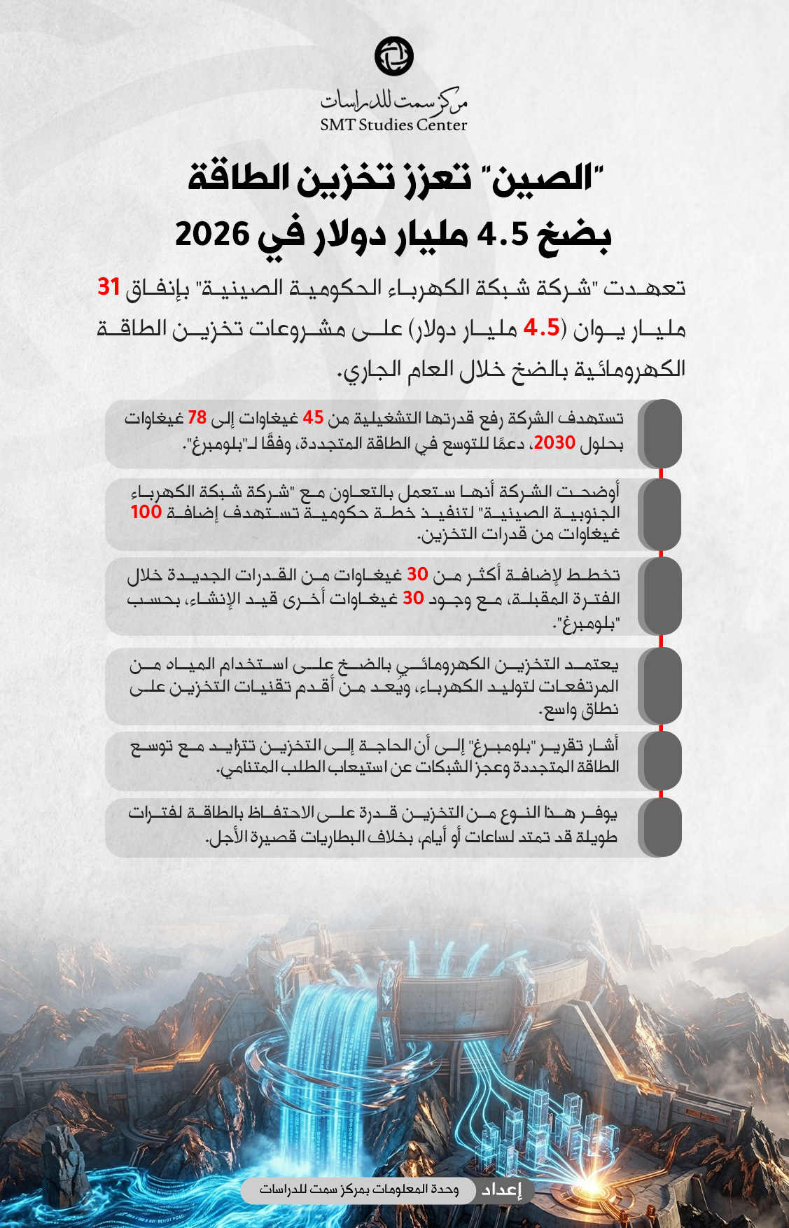 مركز سمت للدراسات مركز سمت للدراسات - “الصين” تعزز تخزين الطاقة بضخ 4.5 مليار دولار في 2026