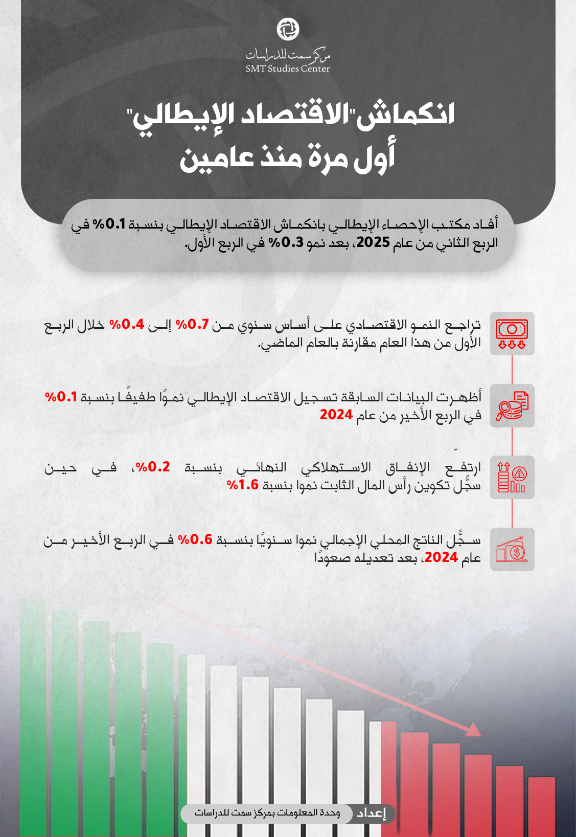 مركز سمت للدراسات مركز سمت للدراسات - انكماش “الاقتصاد الإيطالي” لأول مرة منذ عامين