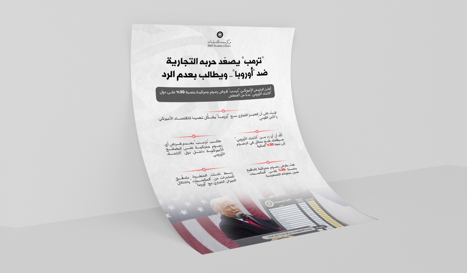 مركز سمت للدراسات مركز سمت للدراسات - “ترمب” يصعّد حربه التجارية ضد “أوروبا”.. ويطالب بعدم الرد