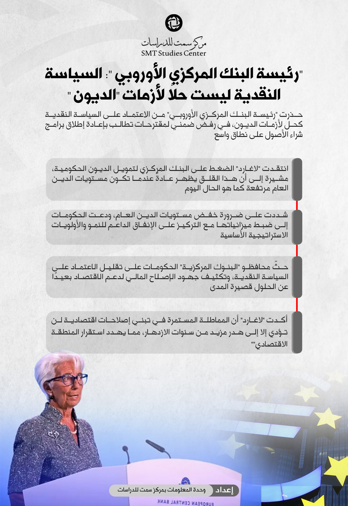 مركز سمت للدراسات مركز سمت للدراسات - “رئيسة البنك المركزي الأوروبي”: السياسة النقدية ليست حلًا لأزمات “الديون”