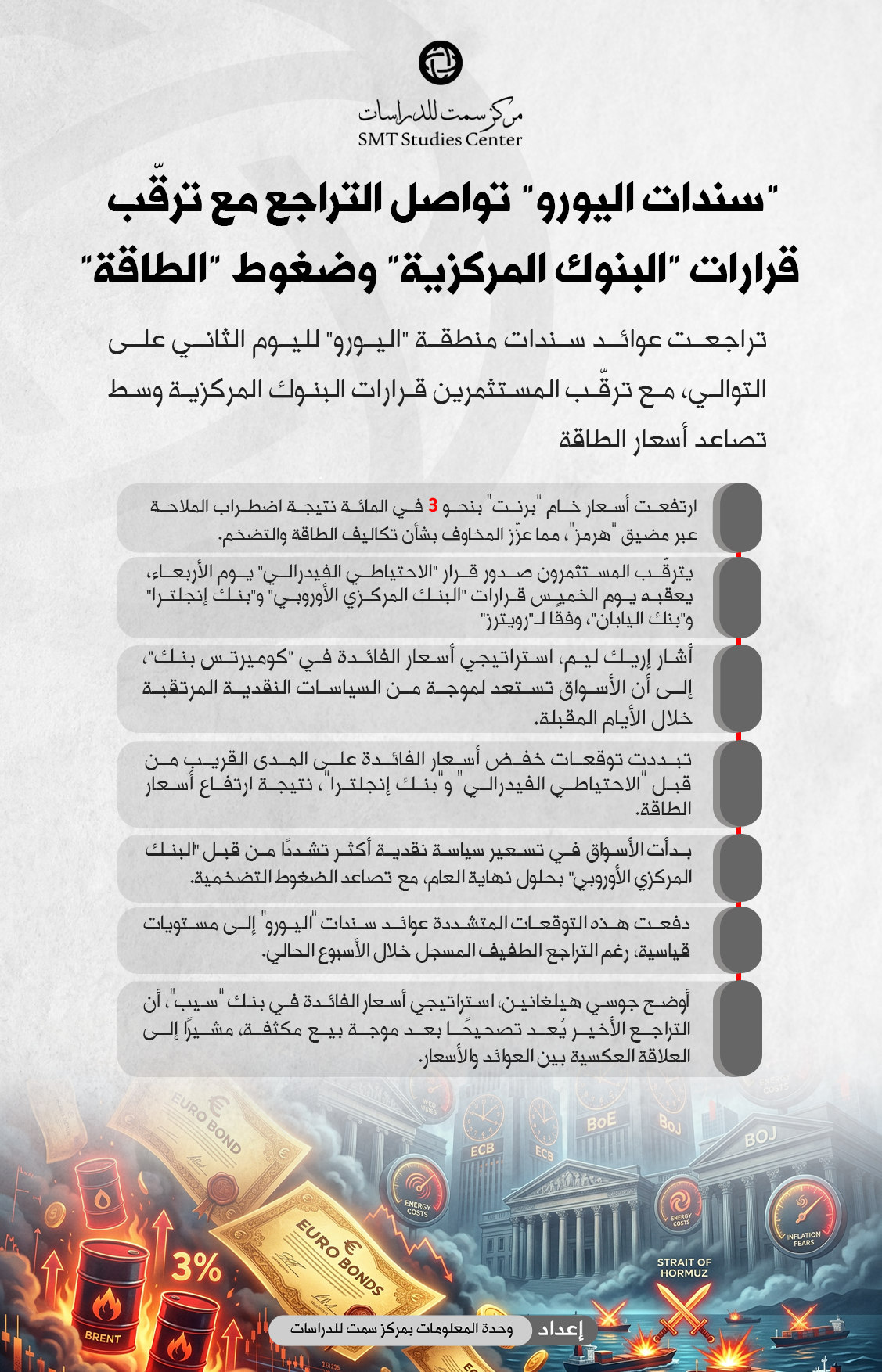 مركز سمت للدراسات مركز سمت للدراسات - “سندات اليورو” تواصل التراجع مع ترقّب قرارات “البنوك المركزية” وضغوط “الطاقة”